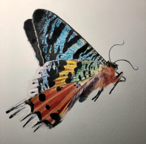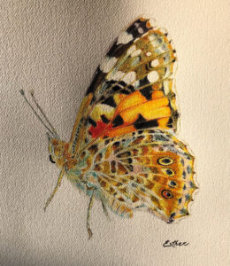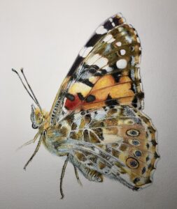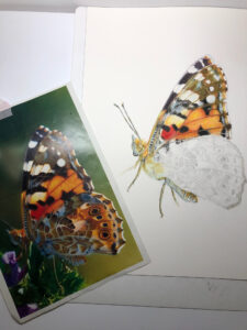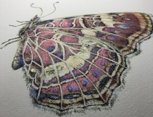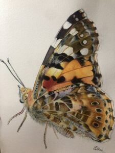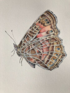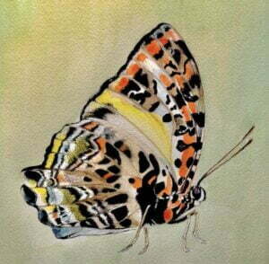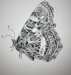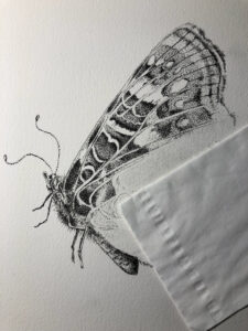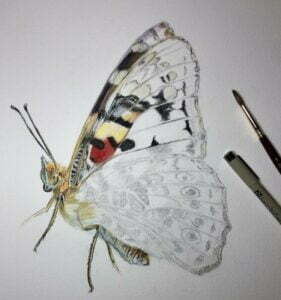 Detalle de la mariposa a lápiz antes de colorear a acuarela